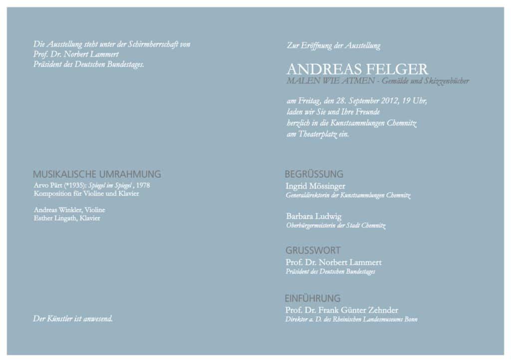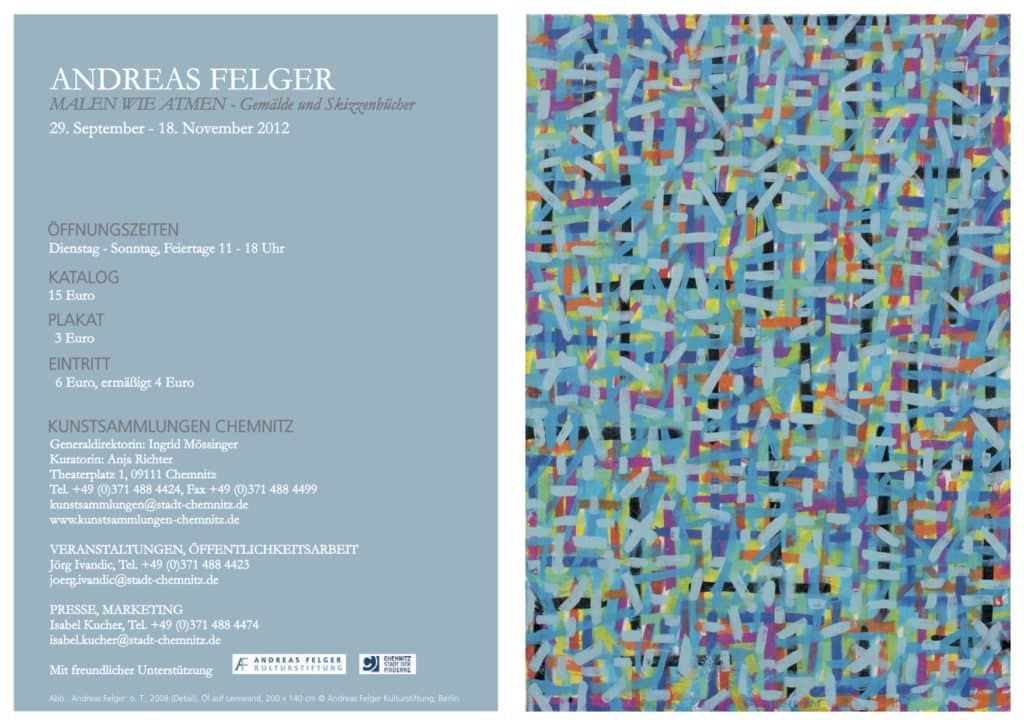 Ausstellungsansicht, ANDREAS FELGER. MALEN WIE ATMEN, Gemälde und Skizzenbücher, Kunstsammlungen Chemnitz, 29.9.–18.11.2012