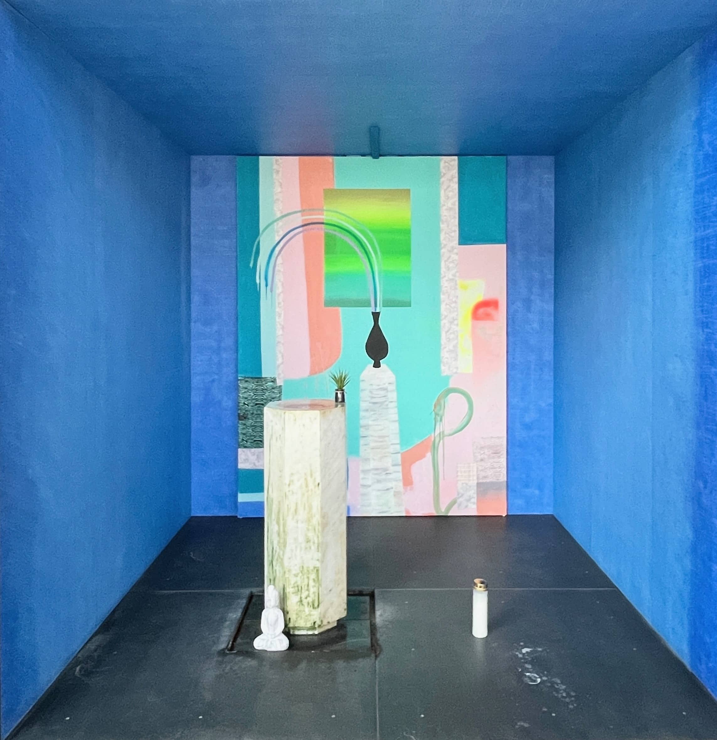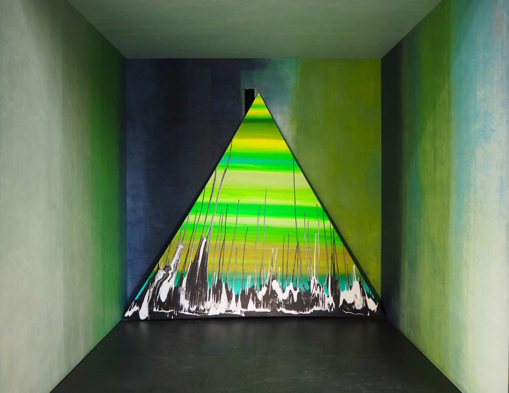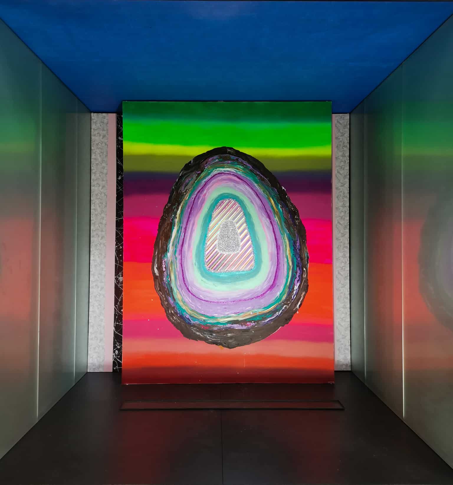 Über ihre Herangehensweise zur erweiterten temporären Gestaltung der neun Kammern im Christus Pavillon sagt die Künstlerin selbst: „Ich habe mich intuitiv auf die Vorgaben der jeweiligen Kammern mit ihren Farben und Botschaften eingelassen. Mein Arbeitsweg ist eher der empfindsame Arbeitsweg. Ich lasse mich instinktiv auf die Gegebenheiten ein. Anders als konzeptionelle KünstlerInnen, die schon im Vorfeld ein Konzept haben, ist es bei mir eher eine Art intuitiver Kunstverwandlung. Indem ich mich auf die Dinge einlasse und sie betrachte, sprechen sie zu mir und zeigen sich. Und was immer sich mir dann in diesem konkreten Moment offenbart, transportiere ich mit meinen künstlerischen Mitteln und Möglichkeiten in etwas Neues.“