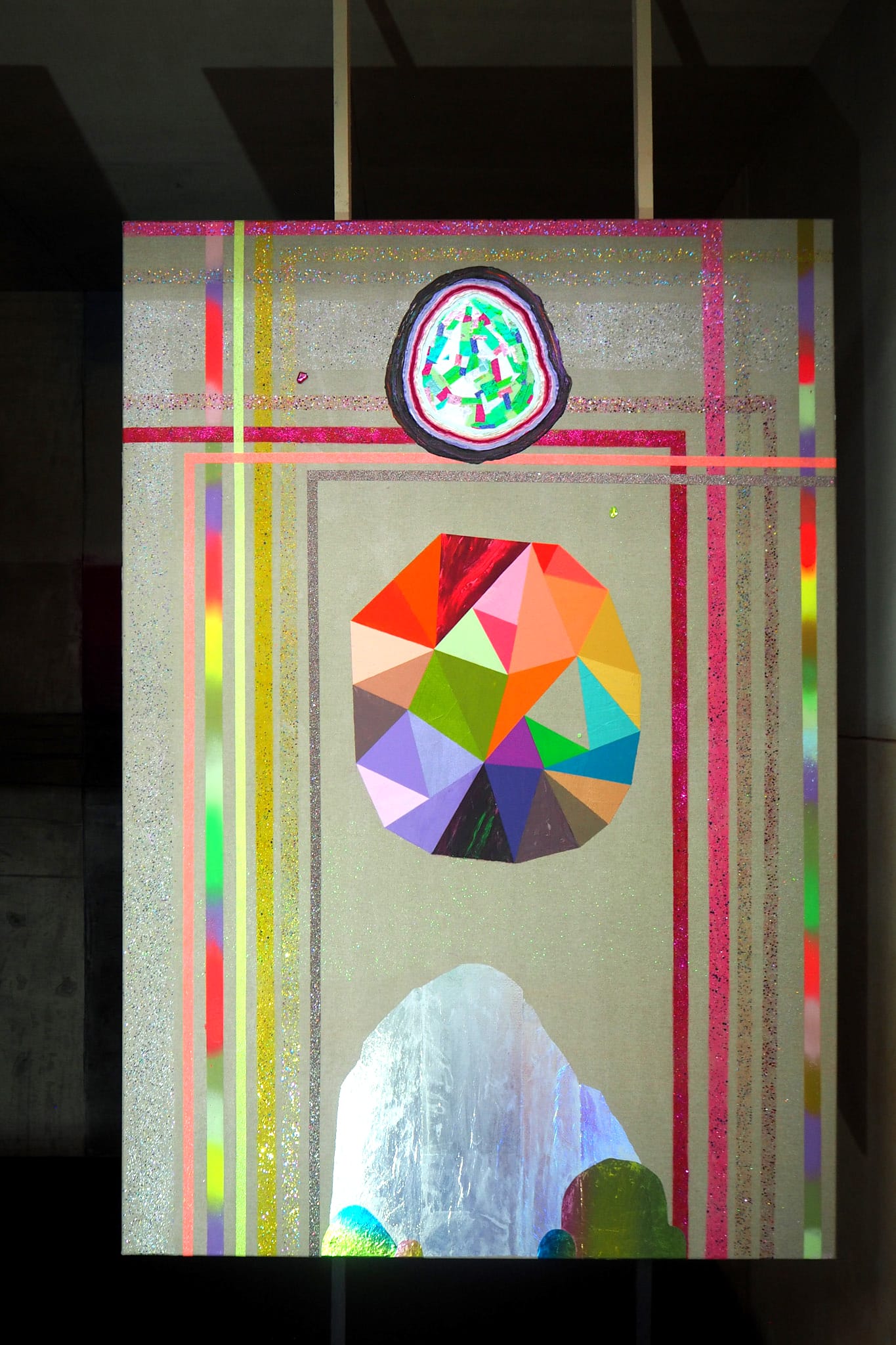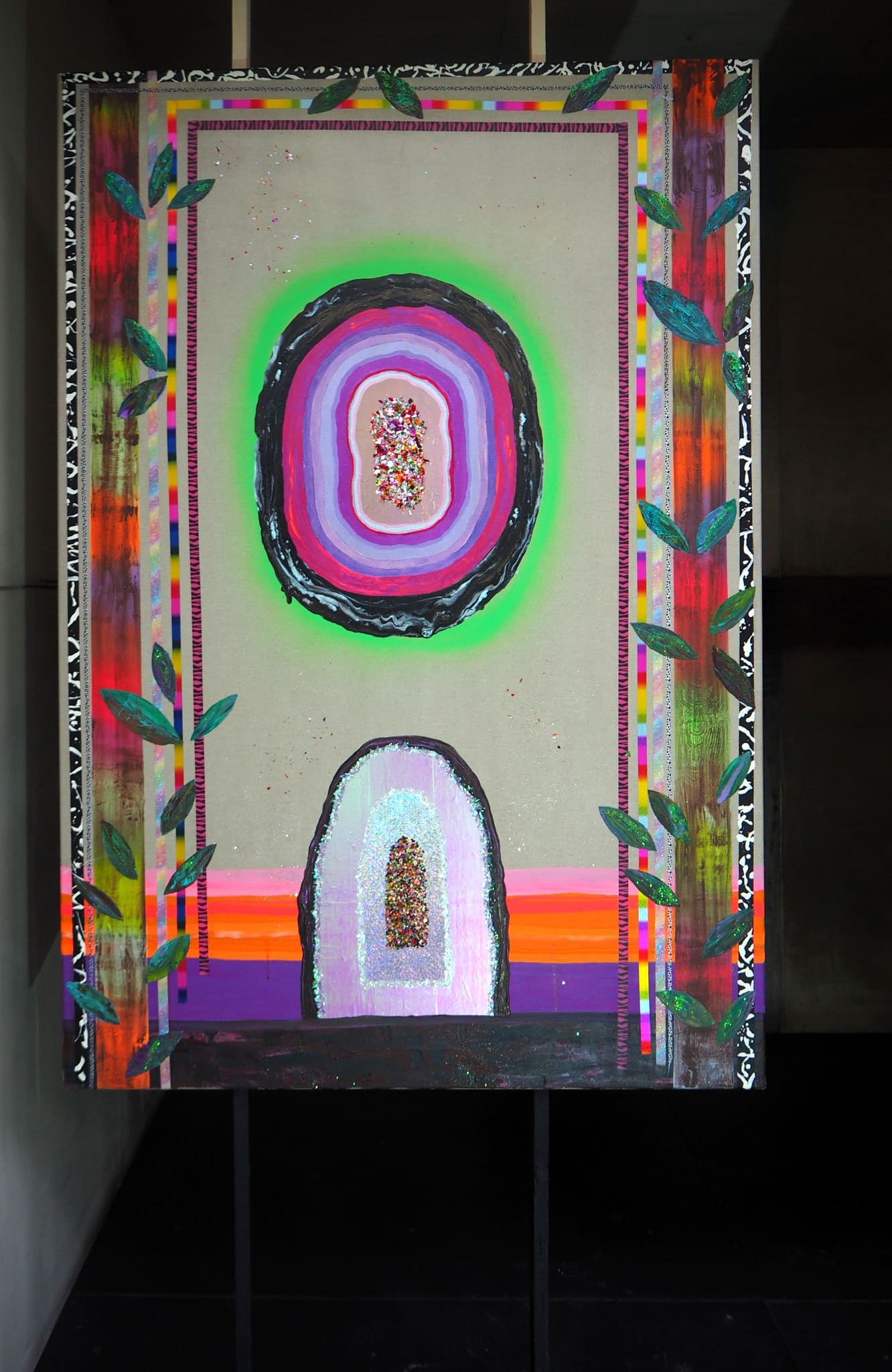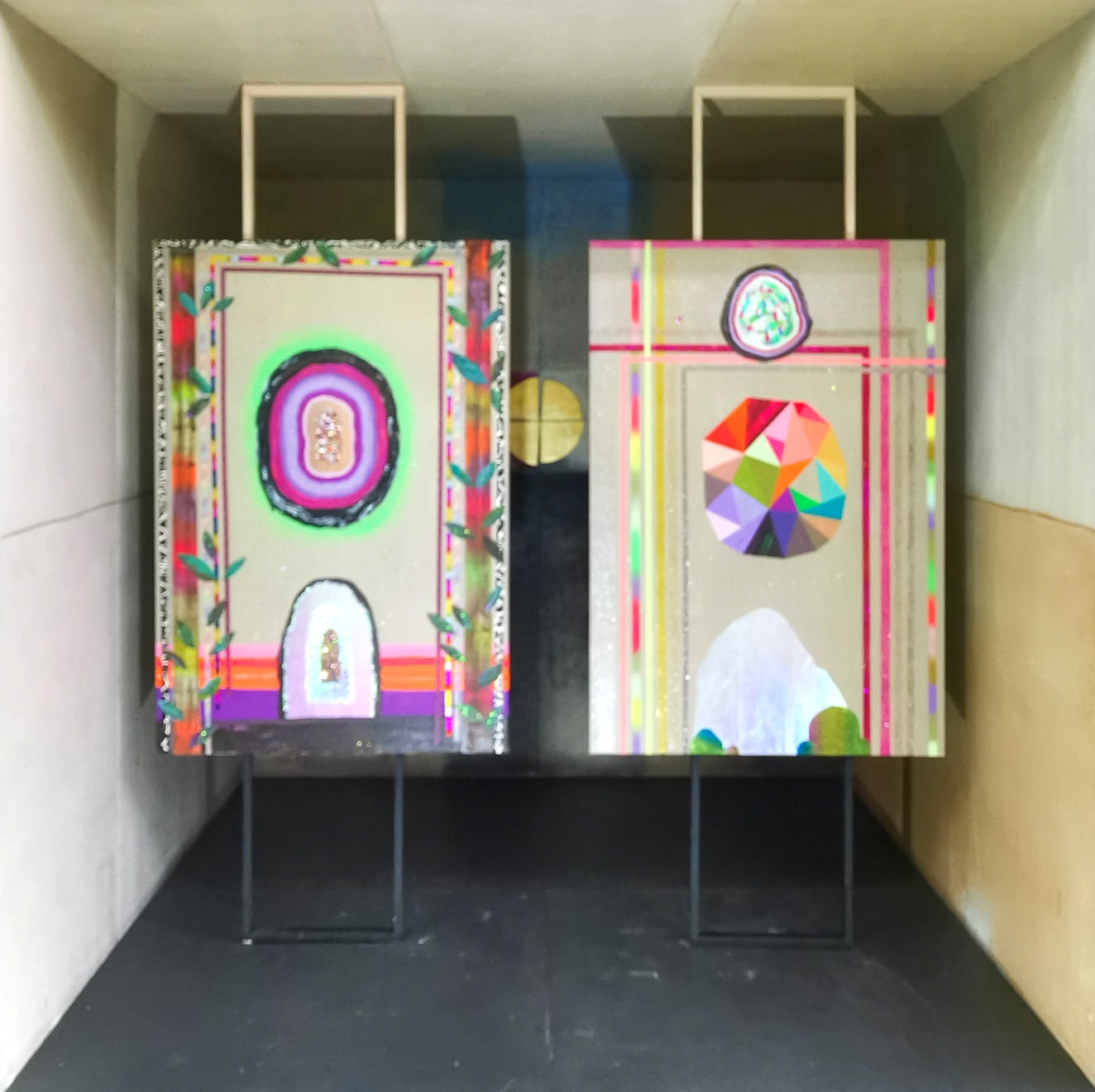 Über ihre Herangehensweise zur erweiterten temporären Gestaltung der neun Kammern im Christus Pavillon sagt die Künstlerin selbst: „Ich habe mich intuitiv auf die Vorgaben der jeweiligen Kammern mit ihren Farben und Botschaften eingelassen. Mein Arbeitsweg ist eher der empfindsame Arbeitsweg. Ich lasse mich instinktiv auf die Gegebenheiten ein. Anders als konzeptionelle KünstlerInnen, die schon im Vorfeld ein Konzept haben, ist es bei mir eher eine Art intuitiver Kunstverwandlung. Indem ich mich auf die Dinge einlasse und sie betrachte, sprechen sie zu mir und zeigen sich. Und was immer sich mir dann in diesem konkreten Moment offenbart, transportiere ich mit meinen künstlerischen Mitteln und Möglichkeiten in etwas Neues.“