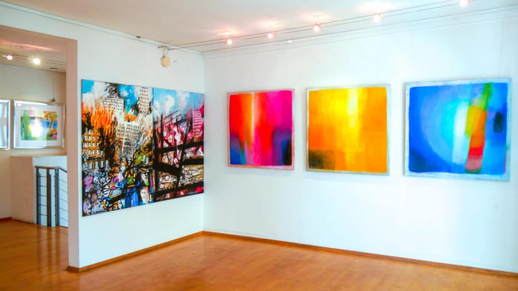 So wie es viele Bezüge gibt, die aus der Galerie herausführen, werden viele Bezüge zwischen den Werken der aktuellen Ausstellung wahrnehmbar. Hervor tritt vor allem die besondere Farbtonalität der Bilder, die Auge und Geist aufhellt, die Wahrnehmung intensiviert und den Räumen einen zusammenhängenden Klang vermittelt. Kaum unterbrochen von einigen bewusst dissonanten Kompositionen erzeugt er harmonische Verhältnisse, die nicht nur die Räume erstrahlen, sondern auch etwas von der Lebensfreude und -zugewandtheit des Künstlers nachempfinden lassen.